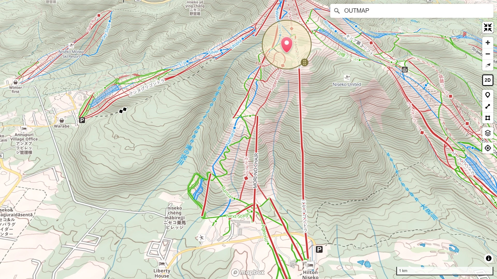 Mapa topográfico de Niseko con relieve y nieve ❄️ Pin en 42.8631, 140.6665